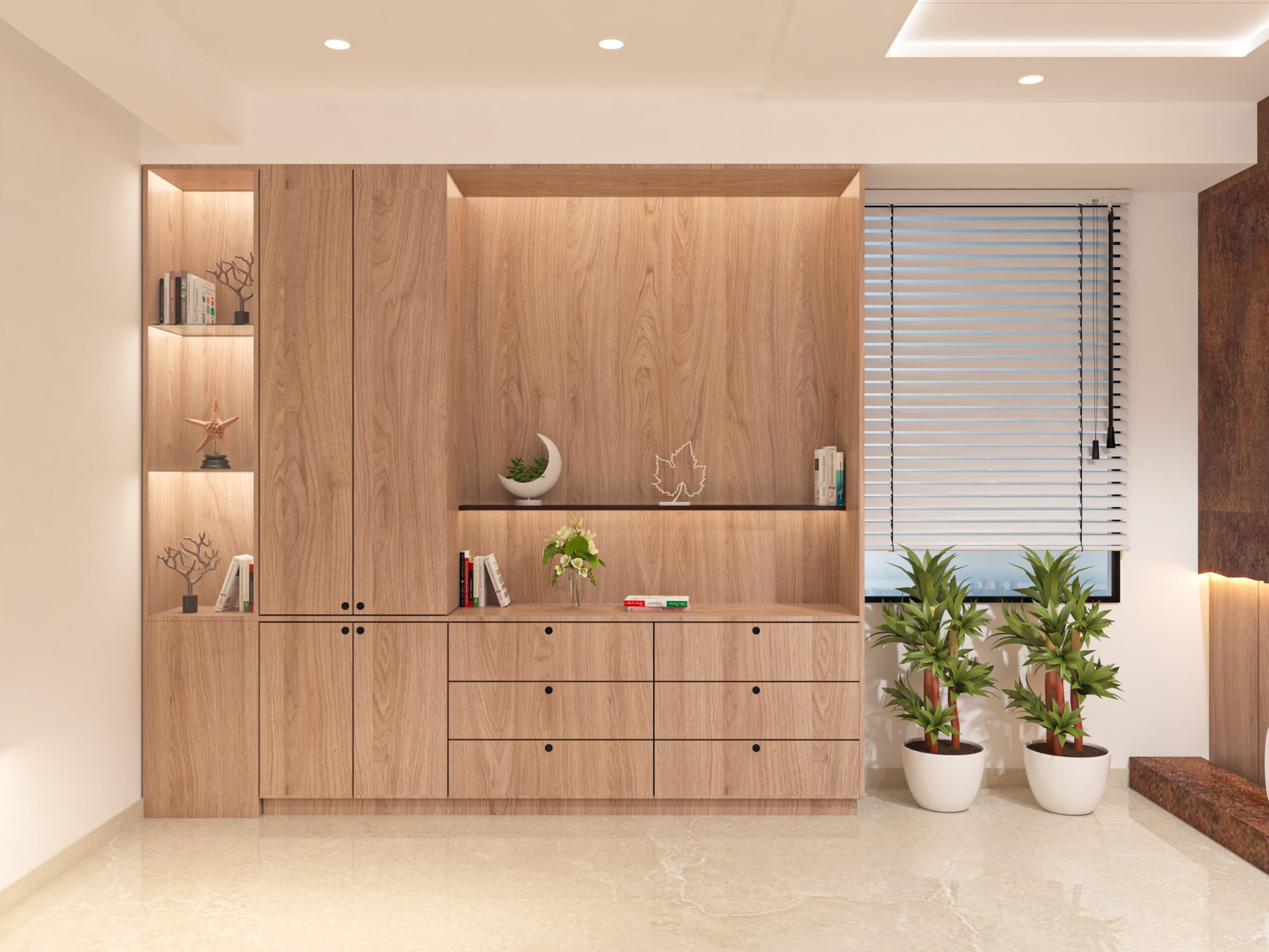 The Boss Cabin project, completed in 2024, is a stunning example of Vivace Studio’s ability to create a sophisticated and functional executive workspace. This project showcases a refined blend of modern aesthetics and practicality, featuring clean lines, earthy tones, and a well-thought-out layout. Designed to foster both comfort and productivity, the space includes an executive desk area, seating for meetings, and ample storage solutions.